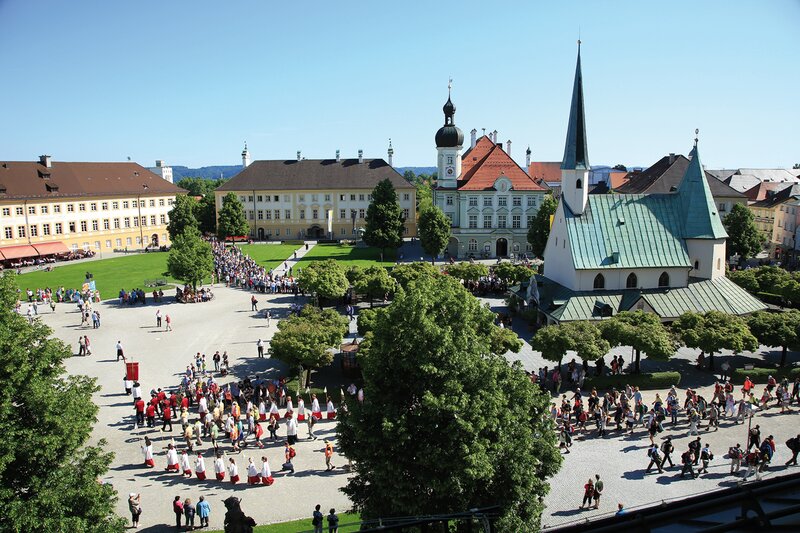 Es zählt zu den bedeutendsten Fusspilgerorten Deutschlands. Die Gnadenkapelle, welche sich mitten auf dem Kapellplatz befindet, ist der älteste Kirchenbau des Landes mit der schwarzen Muttergottes. Nach einer alten Tradition werden beim Betrachten der schmerzhaften Rosenkranzgeheimnisse Kreuze um die Kapelle getragen, bevor die Pilger das Heiligtum betreten. Besonders eindrucksvoll sind auch die unzähligen, teils gotischen Mirakeltafeln, die einen grossen Teil der Kapellenmauer bedecken. Eine alte Chronik von 1489 berichtet, dass ein ertrunkenes, lebloses Kind aufgrund des Vertrauens seiner Mutter zur Jungfrau Maria wieder lebendig wurde. Die Pilger können nicht nur die Gnadenkapelle, sondern auch die anderen zahlreichen Kirchen besuchen. Am Kirchenplatz befinden sich die Stiftskirche mit dem "senseschwingenden Tod" von Eding, die Tillygruft, die Schatzkammer mit dem goldenen Rössl, die St. Magdalenakirche, ehem. Jesuiten-, heute Kapuzinerkirche. In der Konradskirche mit dem St. Annakloster befindet sich das Grab des hl. Pförtners Konrad von Parzham, der im Jahr 1894 starb. Er hat durch sein heiligmässiges Leben, seine Ehrfurcht und seine Liebe, ganz wesentlich zum Aufschwung und zum Gelingen der Wallfahrten nach Altötting beigetragen.