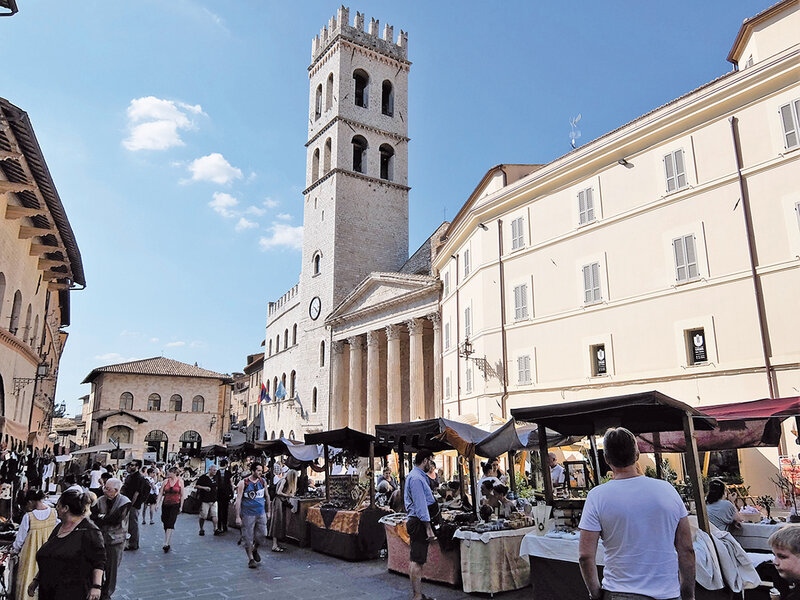 Das alte Städtchen Assisi lädt uns mit seinen schönen Steinhäusern und Gässchen zum Verweilen ein. Möglichkeit zum Besuch des kleinen Klosters S. Damiano, wo der hl. Franziskus den Ruf des Herrn vom Kreuz vernahm und später, während seiner kranken Tage den Sonnengesang schrieb. Besuch der Kirche St. Chiara und der Basilika San Francesco mit dem Grab der Heiligen. Möglichkeit zum Besuch der Kirche della Spogliazione mit dem Grabschrein des Dieners Gottes Carlo Acutis. Ausserhalb der alten Stadt Assisi, auf der Ebene, steht die Basilika S. Maria degli Angeli mit der Portiunkulakapelle. Die Stelle der Kapelle war der "kleine Fleck", der dem hl. Franziskus für seine "Brüder" vom damaligen Ortsbischof geschenkt wurde. Franziskus stellte die uralte Kapelle wieder her. Hier gründete er den Orden der Minderbrüder, und hier erhielt er in einer Vision vom Herrn selbst den Portiunkula-Ablass, den alle Gläubigen gewinnen können.